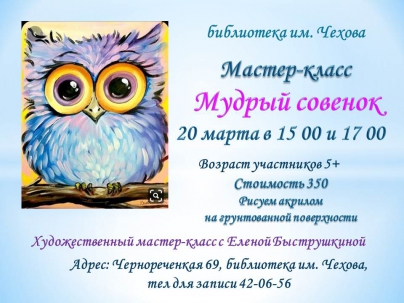 Стоимость участия - 350 рублей. Начало мастер-класса в 15:00 и 17:00.