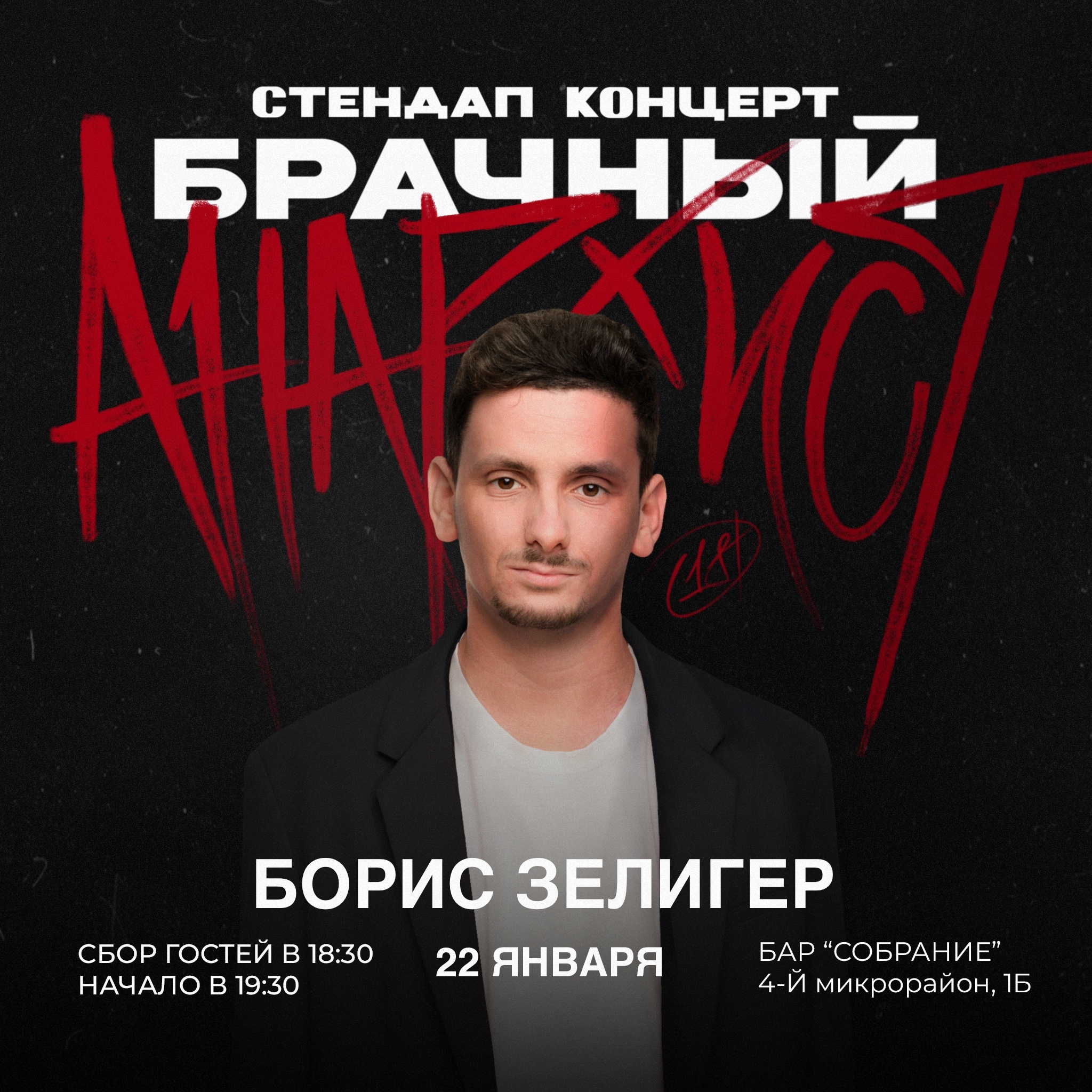 Борис Зелигер — опытный стендап-комик с особым взглядом на жизнь. Интеллектуальный подход к стендапу делает каждую тему особенной, а юмор - тонким и глубоким. В новом концерте комик раскроет тему семьи. Какой он - «брачный анархист»?