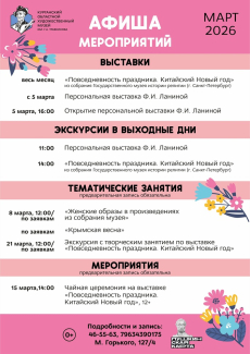Афиша марта: время чувствовать и вдохновляться! Смотрите афишу и выбирайте события по душе. Ждём вас в музее!