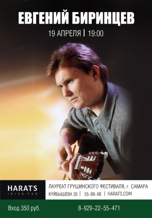 19 апреля в Harat's Pub (г. Курган, ул.Куйбышева, 35) - лауреат Грушинского фестиваля Евгений Биринцев, г. Самара.