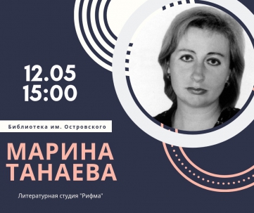 Друзья! Литературная студия «Рифма»приглашает 12 мая в 15 часов на встречу с поэтессой Мариной Танаевой.