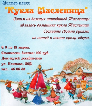 С 9 по 13 марта Дом-музей декабристов приглашает на мастер-класс "КУКЛА МАСЛЕНИЦА"