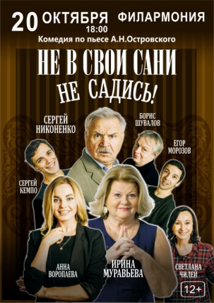 Спектакль «НЕ В СВОИ САНИ НЕ САДИСЬ» в свое время стал и продолжает оставаться одним из самых ярких театральных событий, на которое неизменно собираются аншлаги, и которое нужно увидеть собственными глазами, чтобы запомнить на всю жизнь.