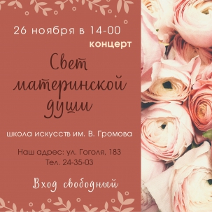 Концертная программа, подготовлена учащимися и преподавателями Детской школы искусств им. В.А. Громова в честь праздника "День матери".