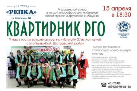 В программе вечера: татарские фольклорные песни, танцы, игра на народных инструментах (гармонь, баян, тальянка), живое общение за чашкой чая.