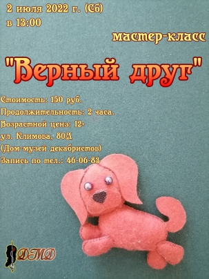 Дом-музей декабристов приглашает в эту субботу в 13:00 на мастер-класс "Верный друг".