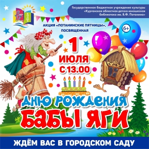 Дорогие друзья! Приглашаем вас 1 июля на интерактивную программу, посвященную Дню рождения Бабы Яги. (6+)