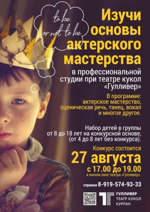 На базе Курганского театра кукол "Гулливер" 27 августа с 17-00 до 19-00 во Дворце культуры машиностроителей пройдет запись детей в театральную студию.