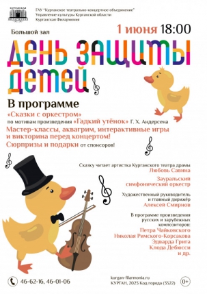 В Большом зале филармонии состоится музыкальная сказка «Гадкий утенок», будут исполнены фрагменты известных произведений русских и зарубежных композиторов: Петра Ильича Чайковского, Николая Андреевича Римского-Корсакова, норвежского композитора Эдварда Грига, французского композитора Клода Дебюсси и др.